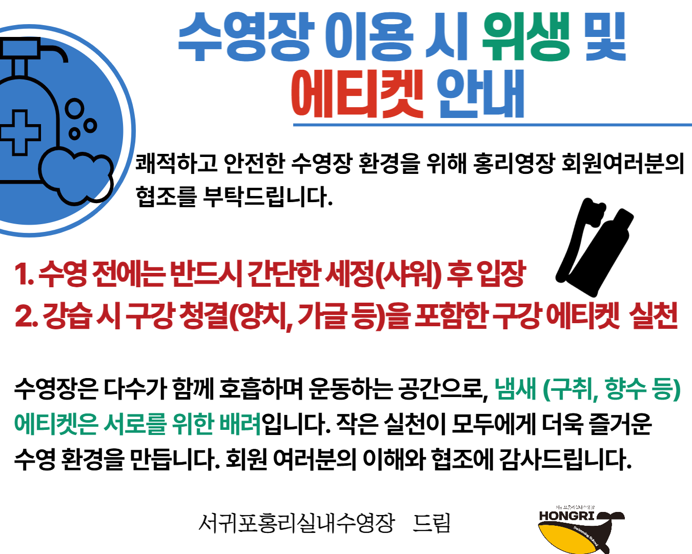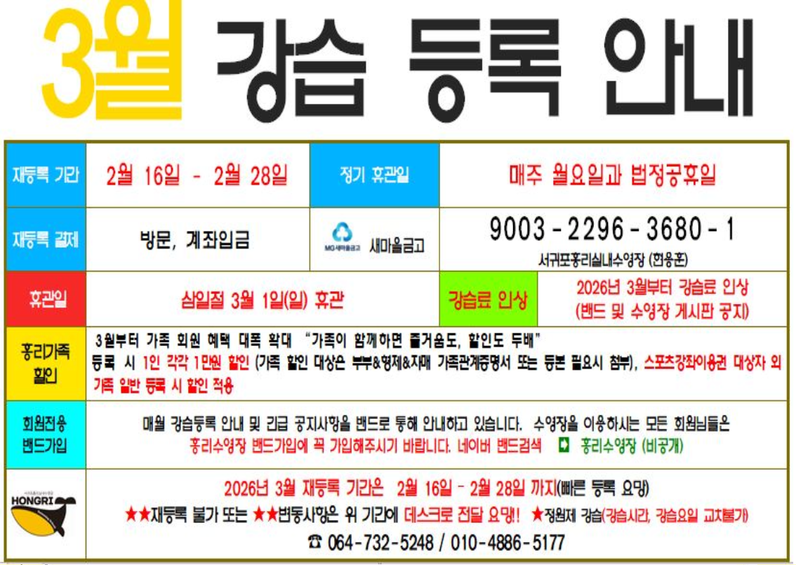 항상 홍리수영장을 아껴주셔서 진심으로 감사드리며, 3월에도 회원 여러분의 건강하고 즐거운 수영 생활을 위해 최선을 다하겠습니다.