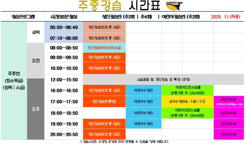 2025년 홍리수영장[공지] 강사로테이션 변경 안내