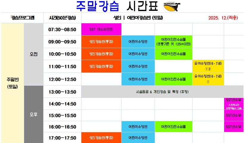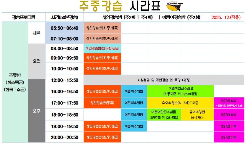 홍리수영장 강습프로그램 시간표